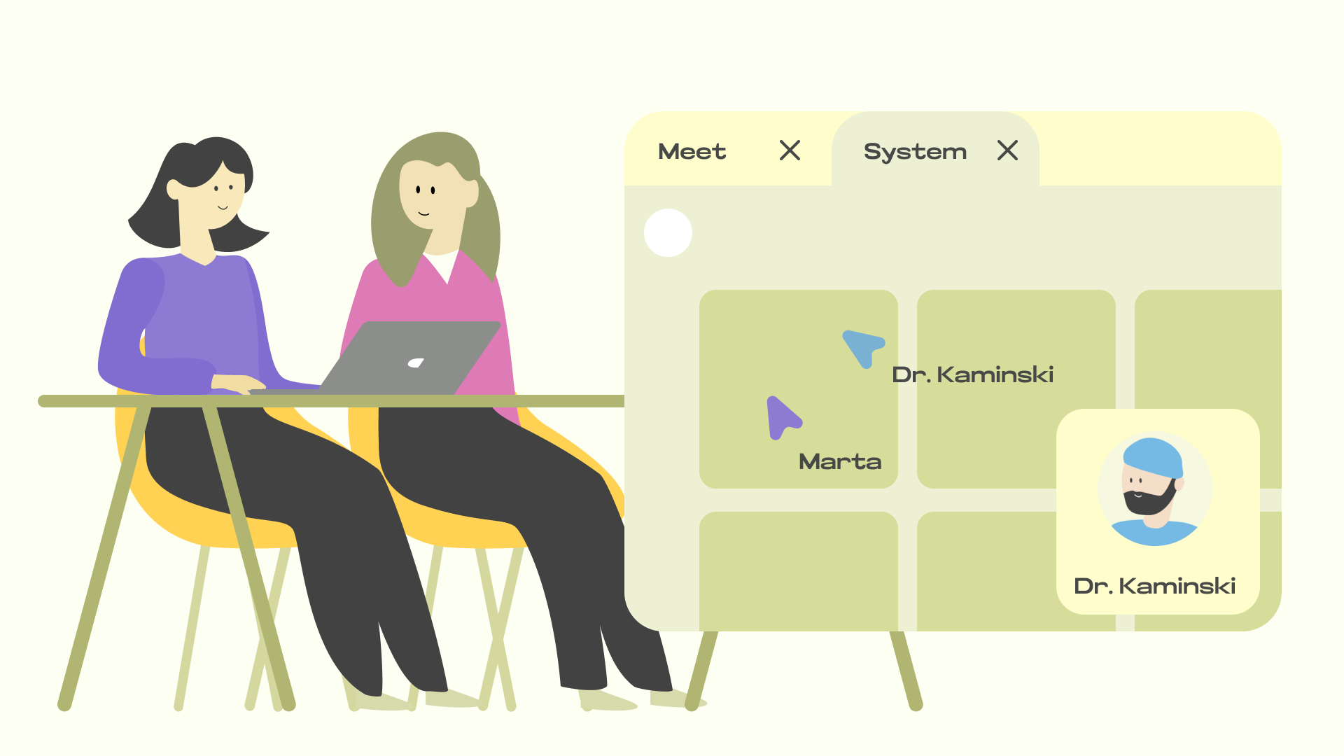 The next day, Dr. Kaminski agreed to the walkthrough. Marta and Yasmin walked him through the new features, highlighting how the system could reduce the back-and-forth and save him time. Dr. Kaminski was skeptical but agreed to give it a try.